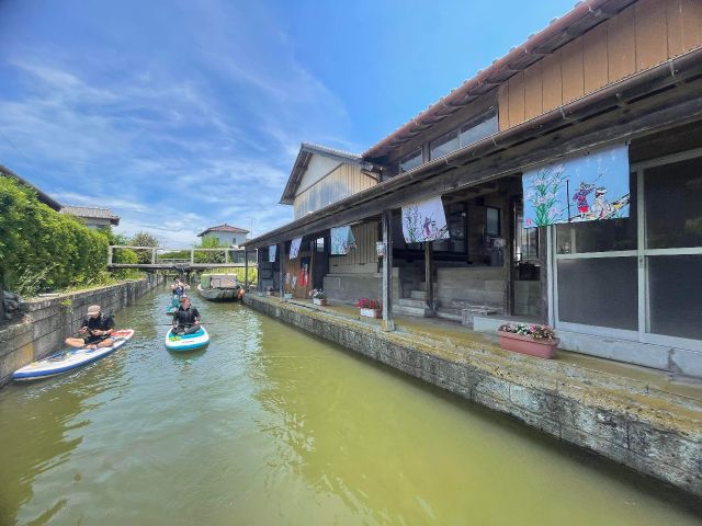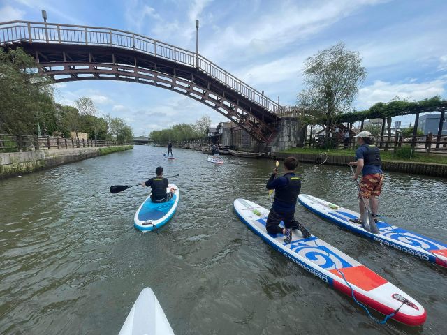 私たちが活動する茨城県潮来市は、水路に囲まれた街。昔ながらの街並みの雰囲気も残っており、水路は流れも少ないため、未経験・初心者の方でも安心してSUPツアーを楽しむことができます。