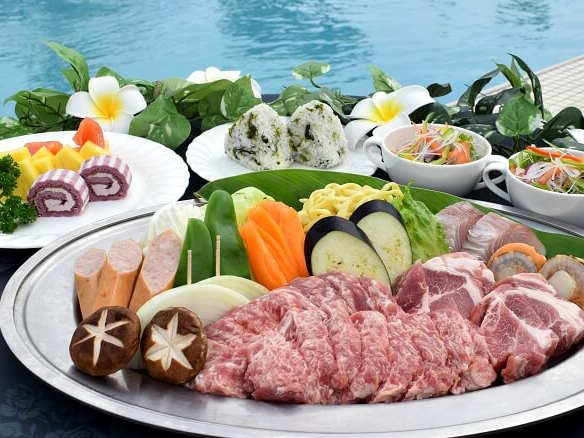 久米島最大級の敷地を誇る久米アイランドホテルのプールサイドでのBBQプランです。