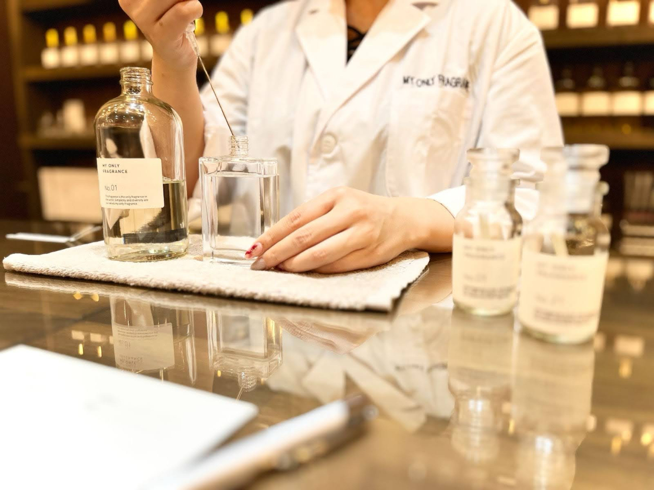 アドバイザーと相談しながら、自分だけの香りが少しずつ形になっていく過程を楽しんでいただけます。