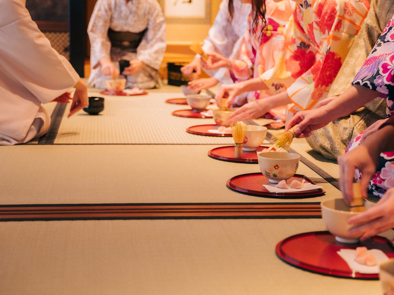 | 料金に含まれるもの | 体験料、着物レンタル料、ヘアセット料(女性のみ)、茶道体験料、抹茶、和菓子、書道体験料、色紙 | 1予約あたりの予約可能人数 | 1人〜4人 |