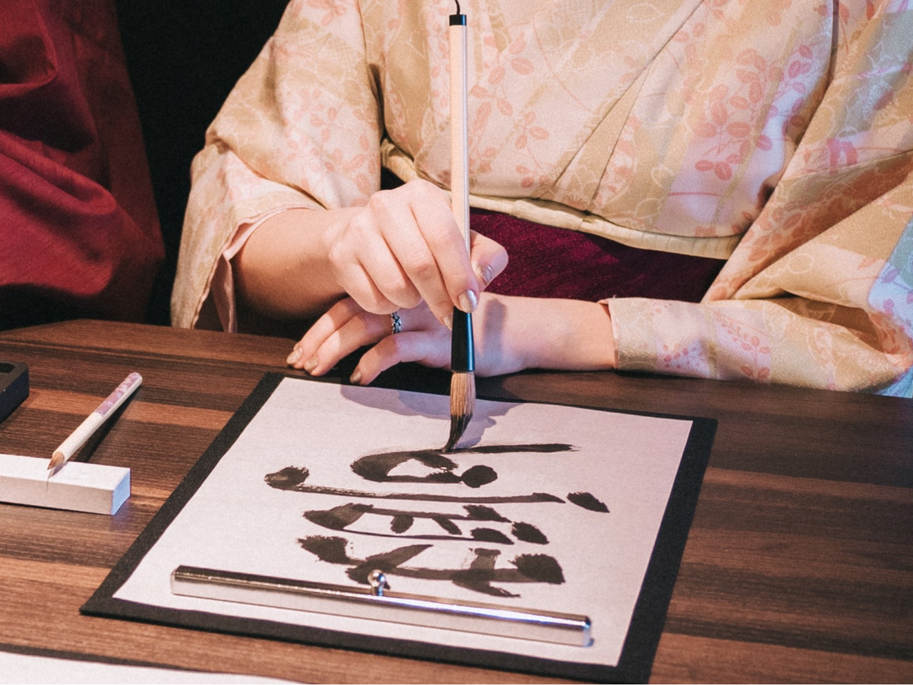 着物に着替えて茶道&書道体験 本格的な茶道体験と・自分好みの漢字を書いてみましょう♪ 京都・中京区 【京都文化体験】