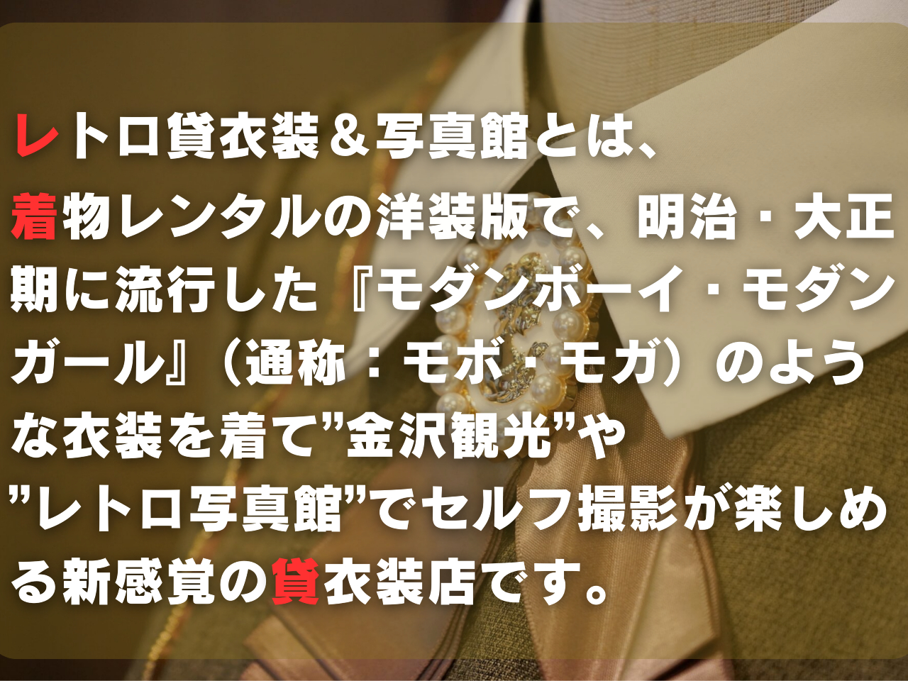 【金沢】貸衣装3時間プラン★レトロ洋装で写真撮影&観光〜女性、カップル記念に♪