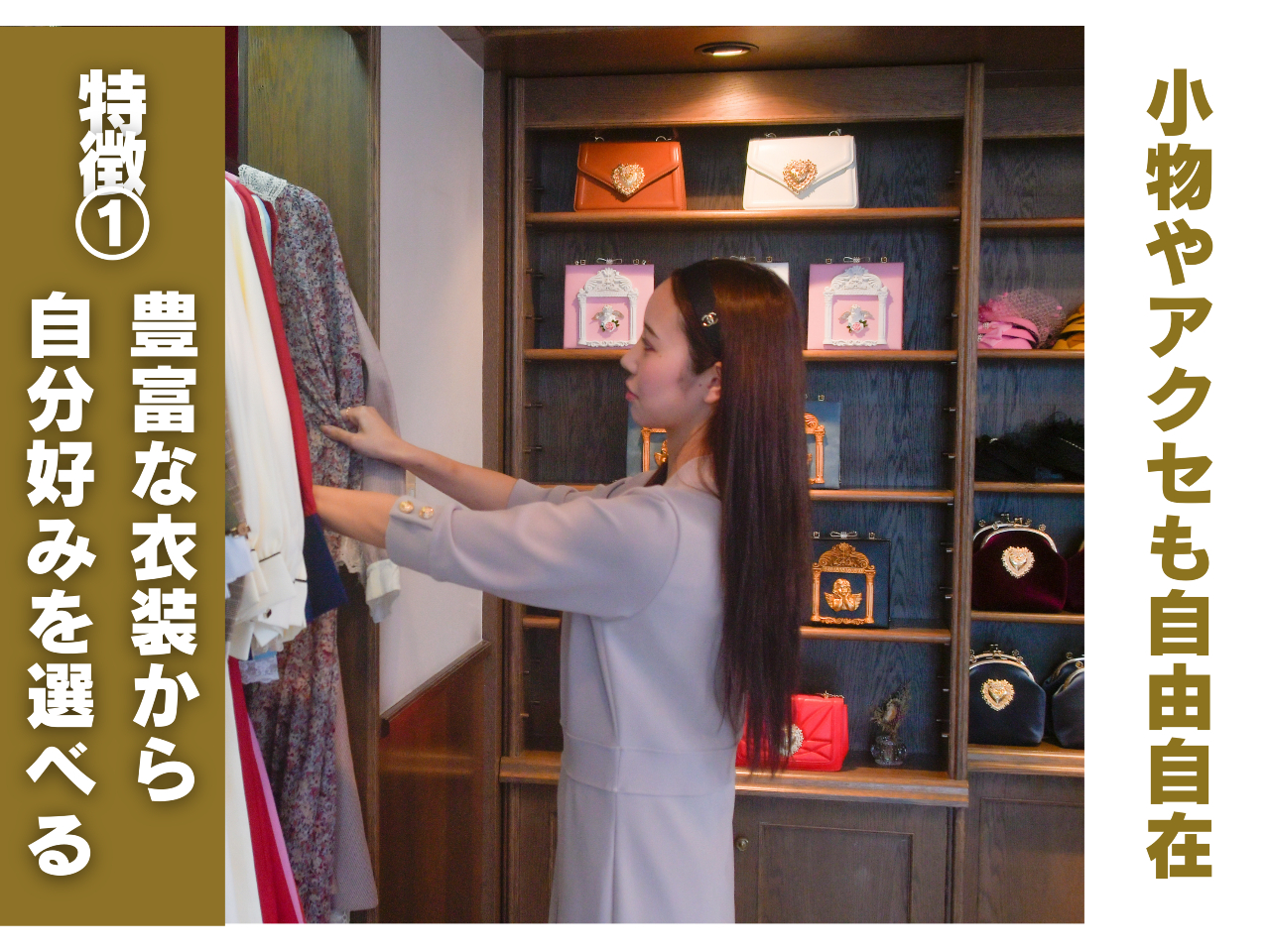 衣装・帽子・アクセ・バッグがレンタルプランに含まれており、手袋・傘など当日オプションで利用可能!