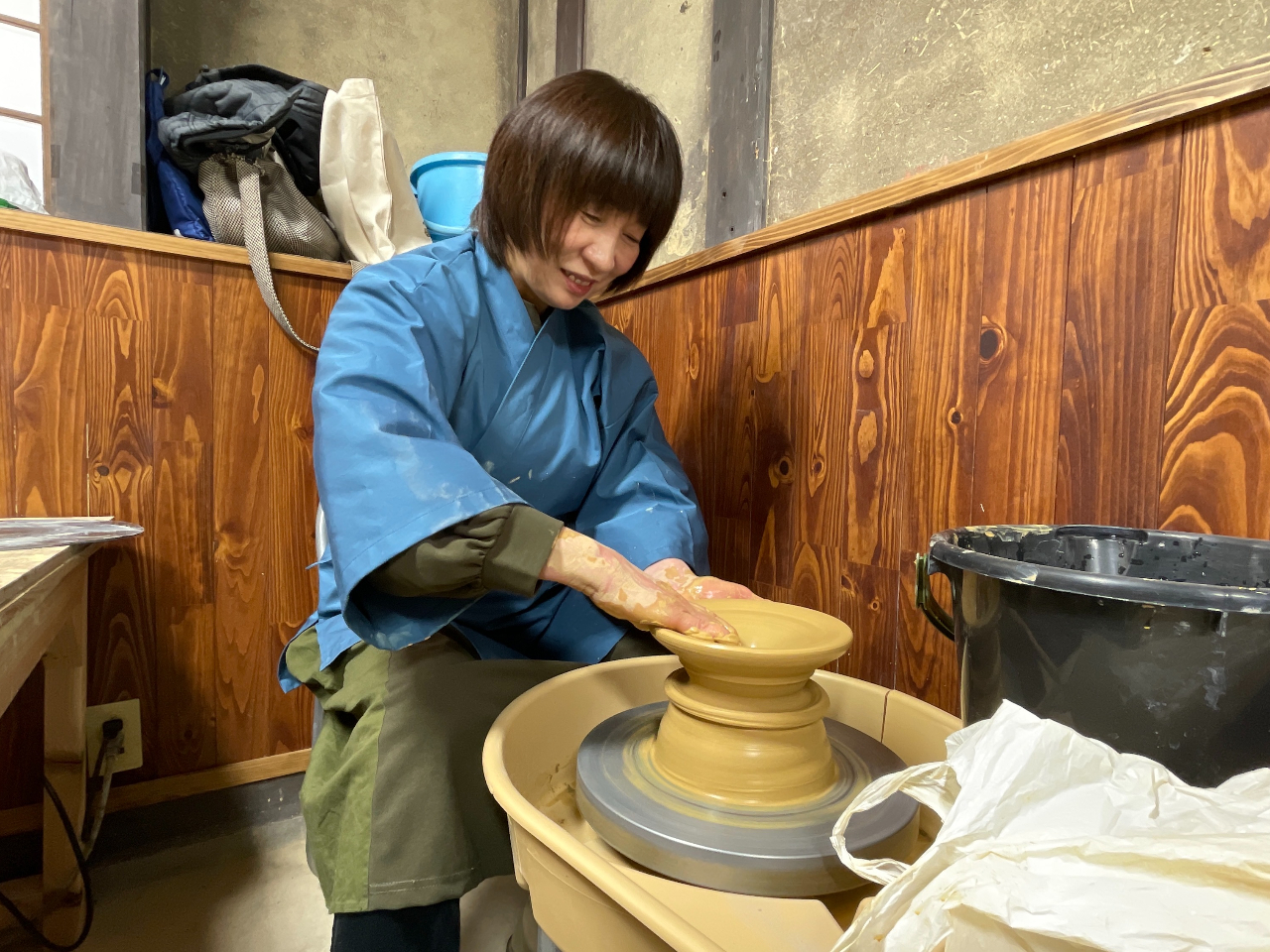 かやぶき建物『男ノ子焼の里』で松ちゃん先生の陶芸体験教室(ろくろコース)!