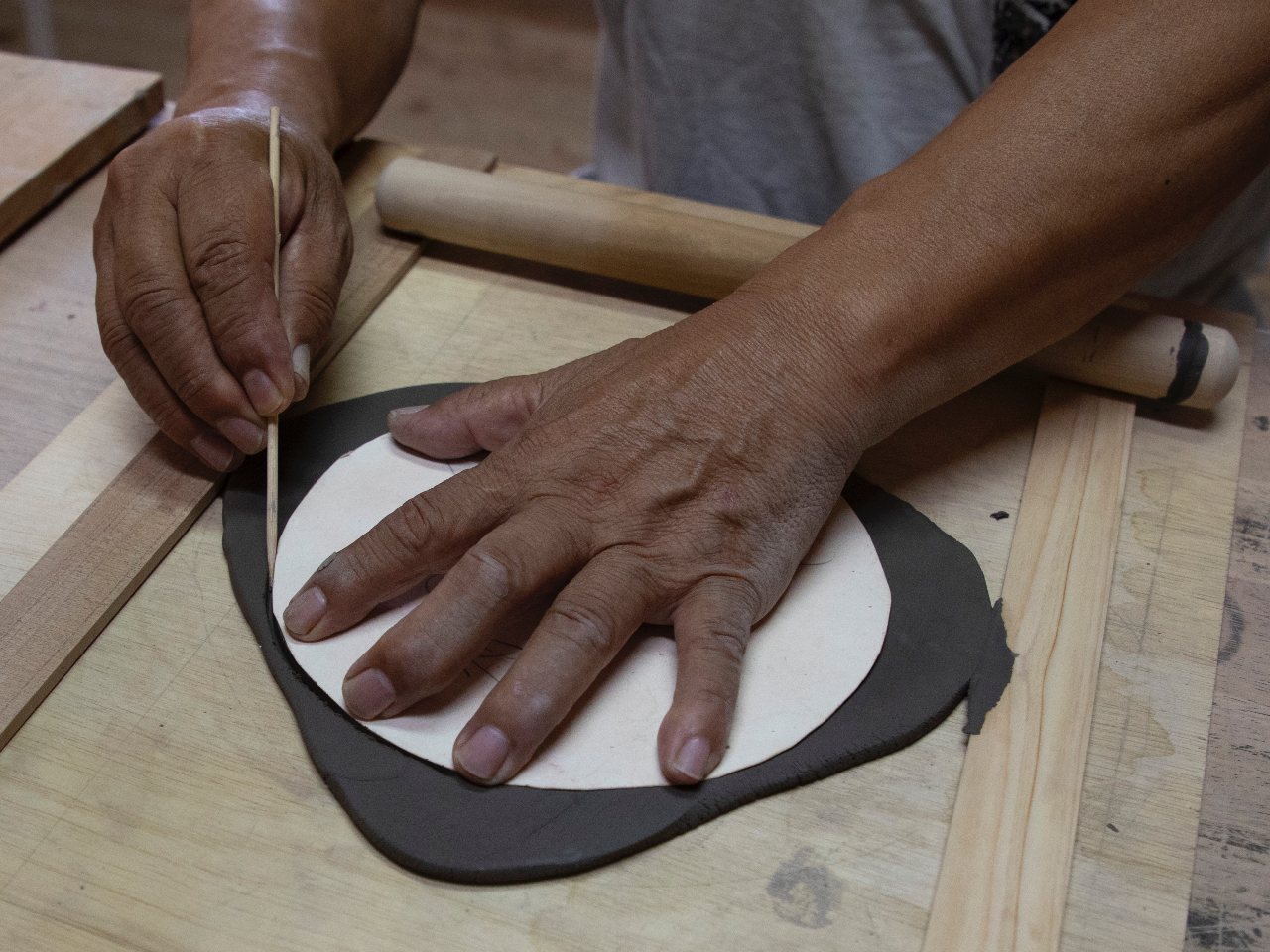 手びねり(たたらづくり)にて。日常使いしやすいお皿を作ることができますよ!