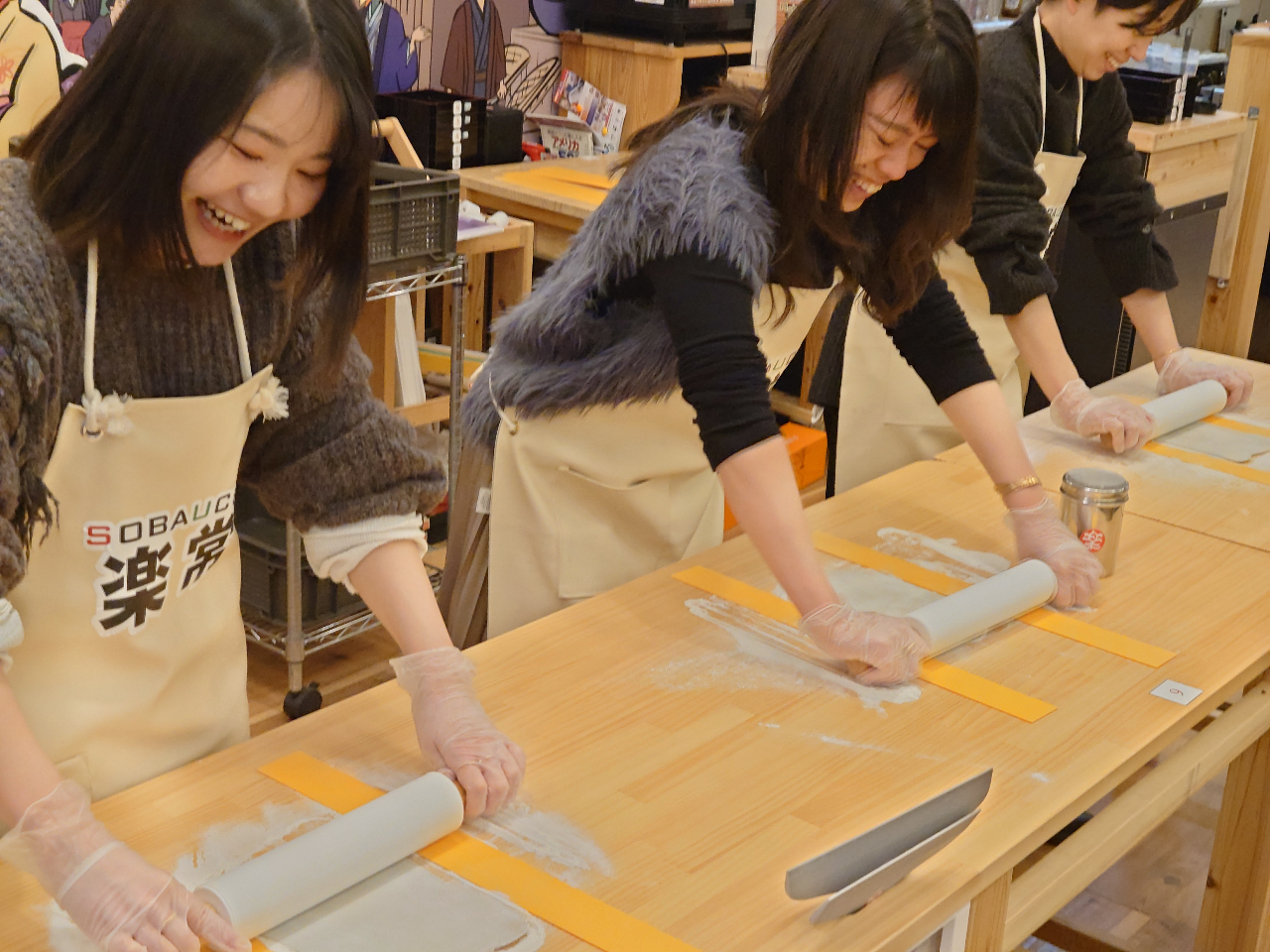 おしゃれな和風スタジオで十割そばを作って食べよう!30分で作れちゃう独創的なエンターテイ麺ト体験ショップ。デートや女子友、サークル仲間と十割そば斬り体験