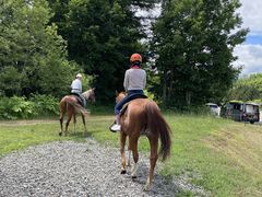 2人で訪問して体験したのは私のみ。友達にはお留守番のわんちゃんと待っていてもらいました。新しい施設なので施設は綺麗でお茶もいただきました。ウェスタンスタイルの鞍、よく調教されたお馬さんでほぼオートマでした。雨上がりだったので虫が沢山、大自然を感じました。虫除けスプレーして行って正解。森のコースも綺麗に整備されていて気持ちよかったです。途中平坦な所では速歩をさせていただき、経験者にも充分満足できる内容でした。