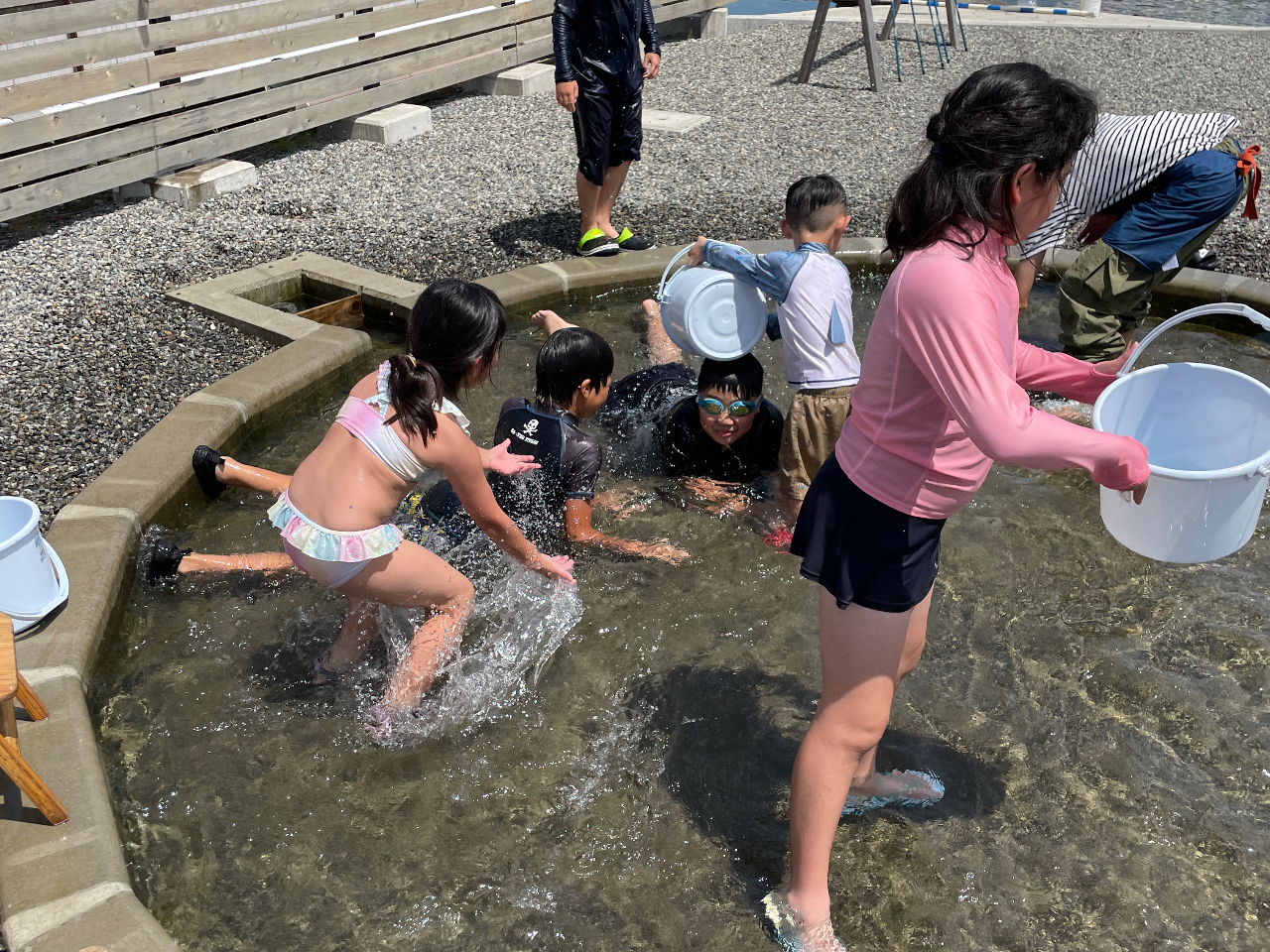 井戸水掛け流しのつかみ取り池はとっても気持ち良いですよ!