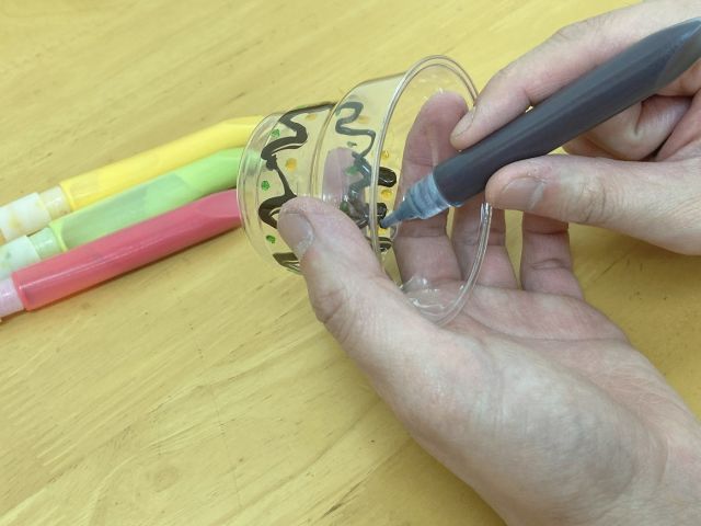 カップにお好きな色のソースを塗った後、本物そっくりのクリームをしぼります!