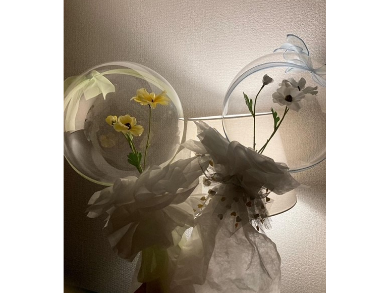 韓国で大人気!SNSでも話題のしぼまない魔法の様な透明の風船にアーティフィシャルフラワーをアレンジして作るフラワーバルーンが作れます。記念日のプレゼントに喜ばれるアイテムです。