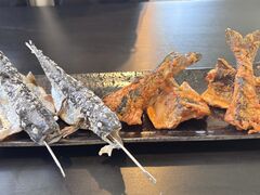 釣った魚を塩焼きと唐揚げでごちそうになりました。どちらも美味しかったです!