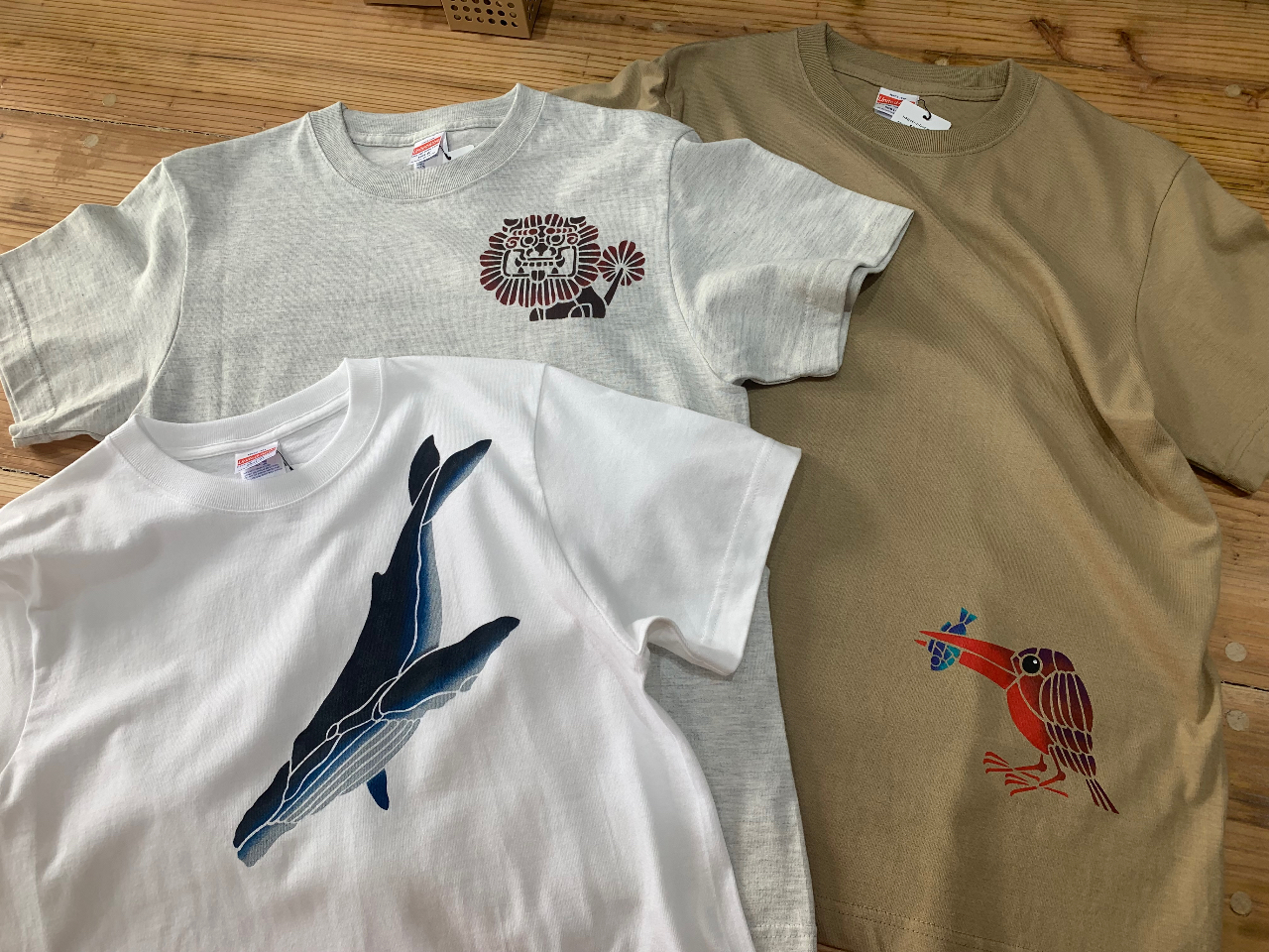 沖縄の動植物をモチーフにデザインした約50種類の型の中から好きな型を選んでオリジナルのTシャツが作れます。