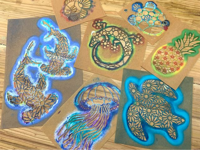 好きな型を選びステンシルのように筆かスポンジでトントンと好きな色を入れていきます。