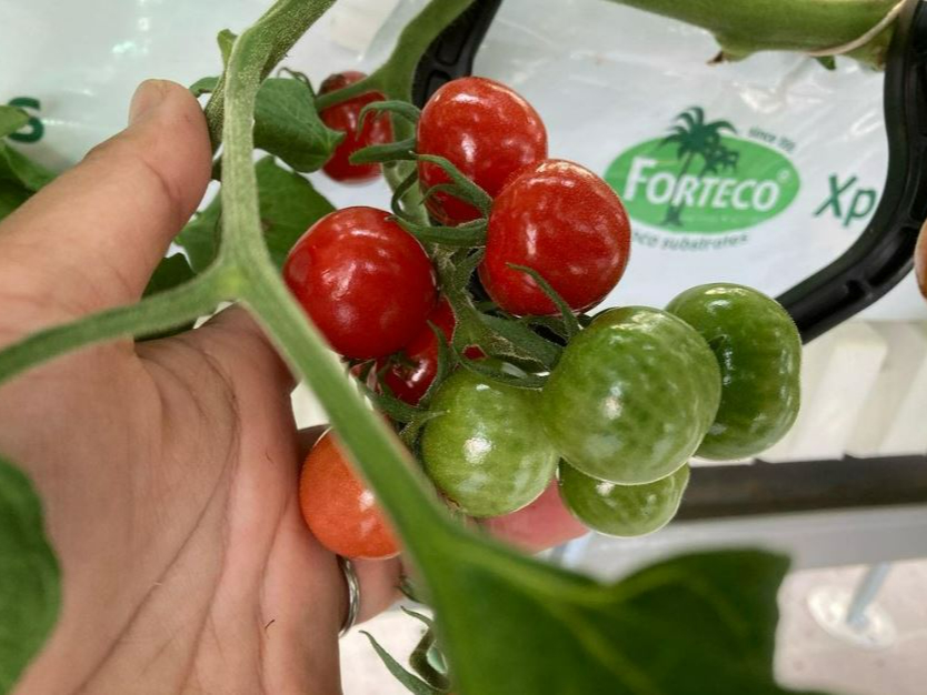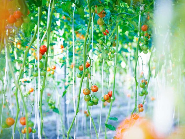 ビニールハウス内で日光を浴び光合成をしっかりさせ、水を与えないことで、トマト本来の甘さを引き出して育てています。