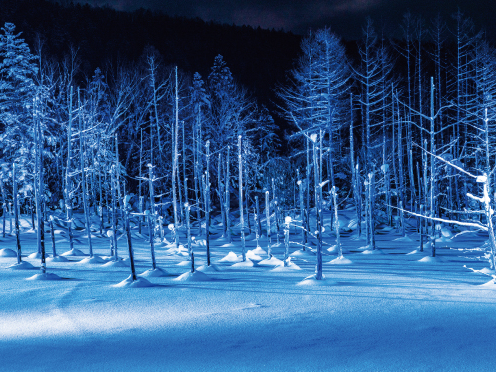 北海道美瑛と言えば幻想的な景観で有名になった青い池。自生した白樺のように予期せず生み出された自然現象から生まれた神秘な場所。冬になると凍結した湖面に雪が降り積もり、夏とは違った神秘的な光景が広がります。さらに冬限定でライトアップが行われ、純白の”青い池”をロマンチックに彩り、冬ならではの美しい光景は必見です!