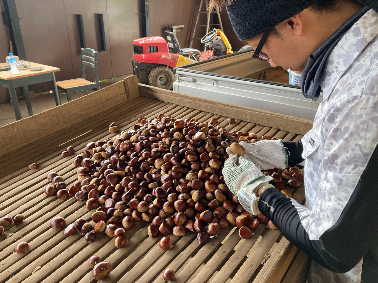栗拾い体験をされた方にお土産として厳選した無農薬の体に優しい生栗をお一人様、500gお渡しします。