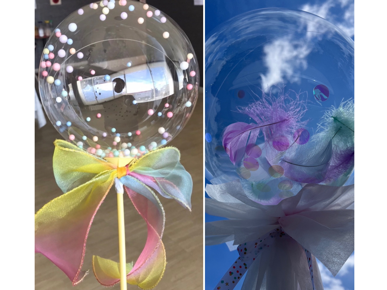 韓国で大人気!SNSでも話題のしぼまない魔法の様な透明の風船の中にフェザーやキラキララメなどを入れて制作しみんなで記念撮影!卒業・入学・入園など思い出に♪