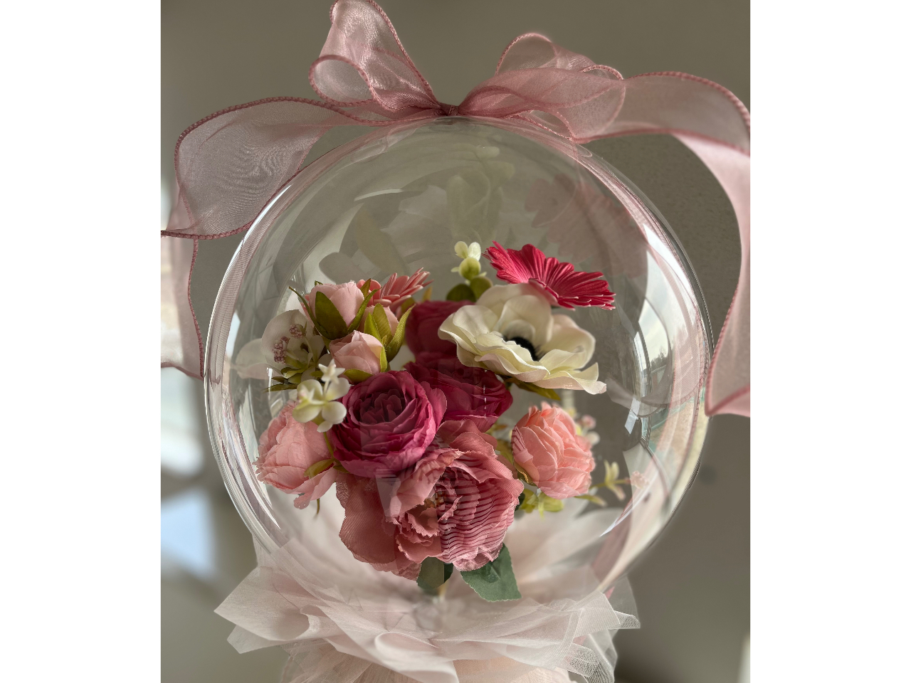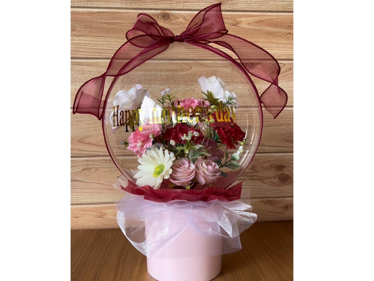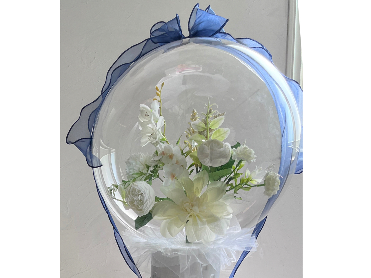 韓国で大人気!SNSでも話題のしぼまない魔法の様な透明の風船にアーティフィシャルフラワーをアレンジして作るフラワーバルーンが作れます。記念日のプレゼントに喜ばれるアイテムです。