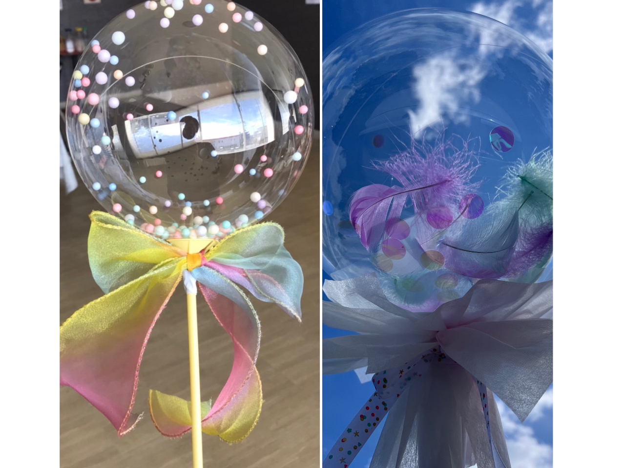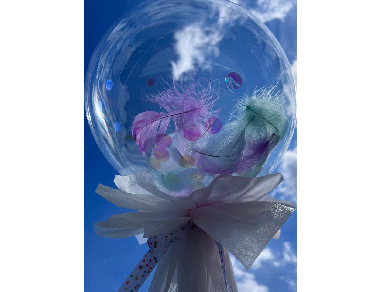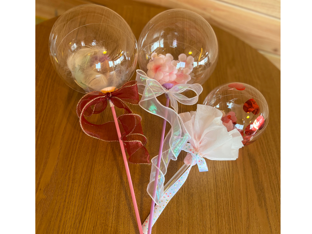 韓国で大人気!SNSでも話題のしぼまない魔法の様な透明の風船の中にフェザーやキラキララメなどを入れて制作しみんなで記念撮影!卒業・入学・入園など思い出に♪