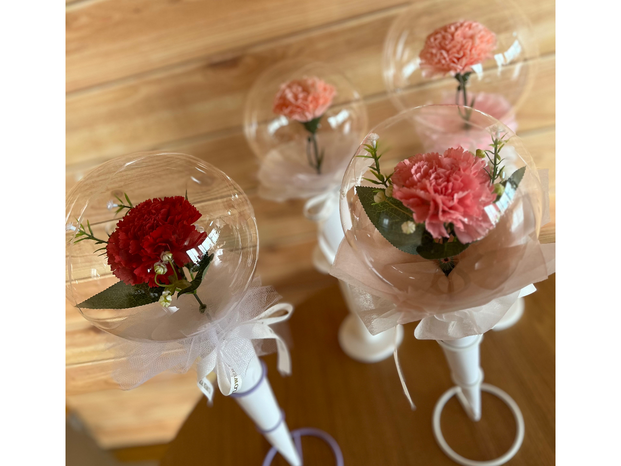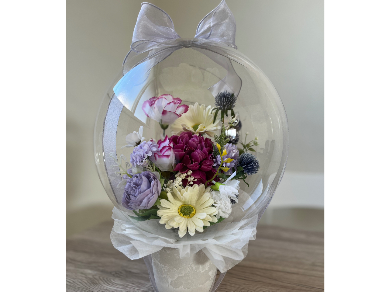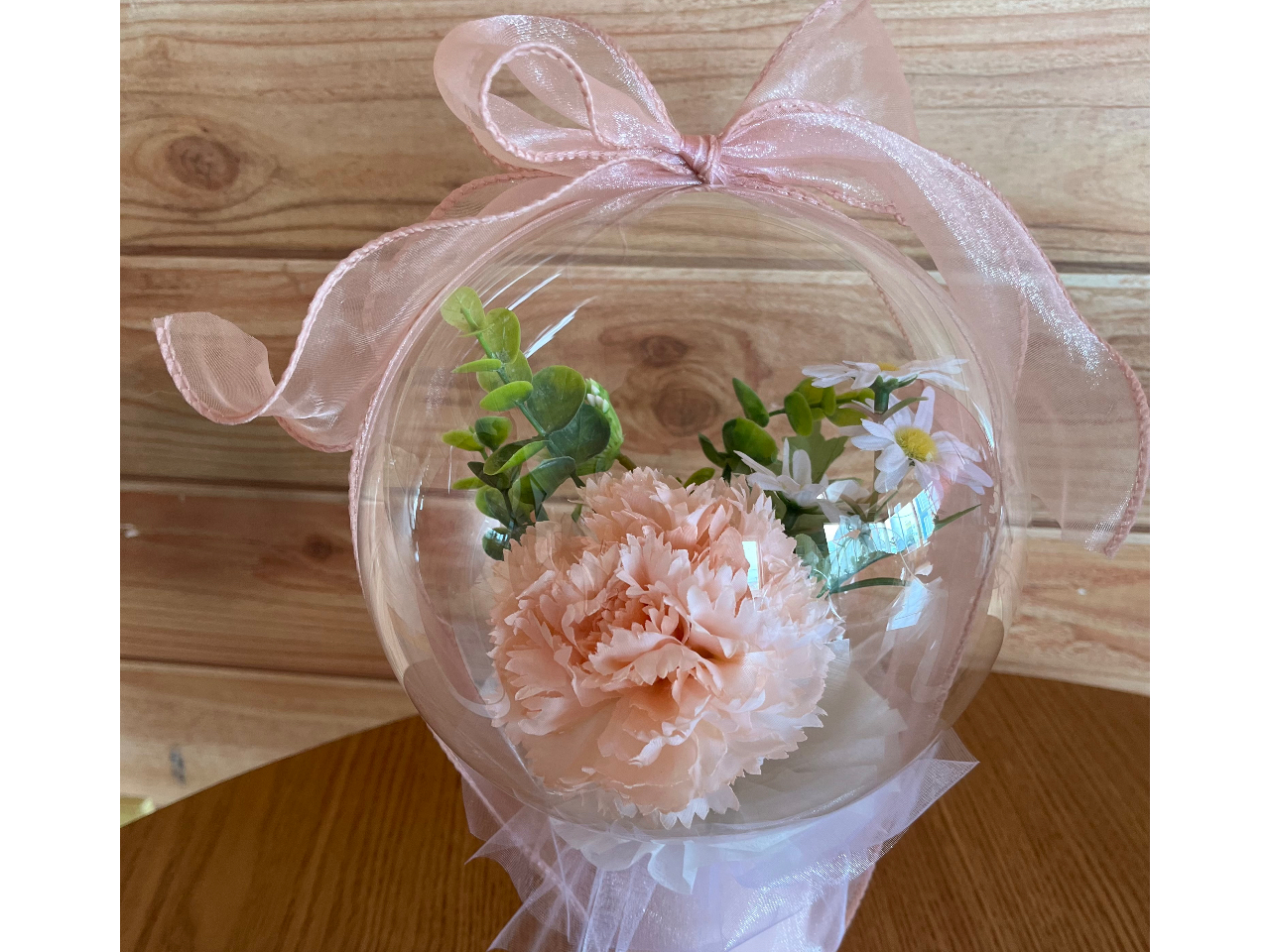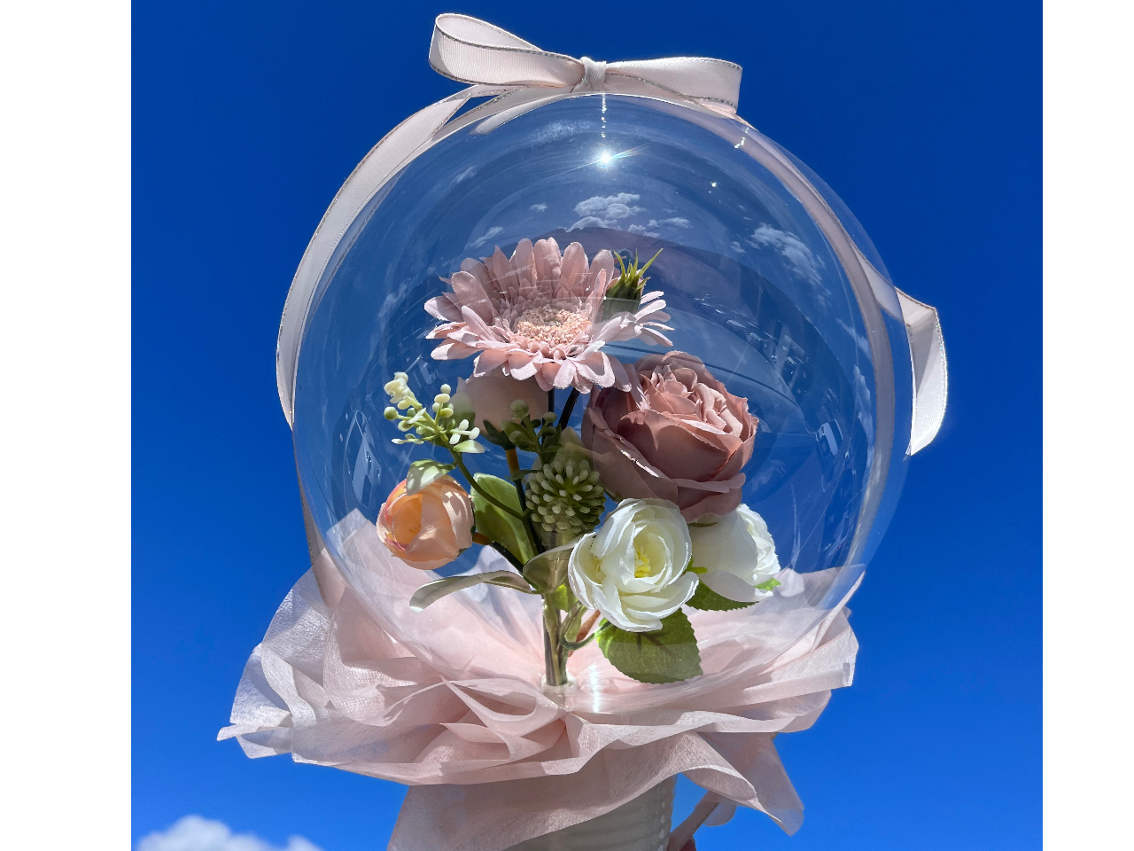 韓国で大人気!SNSでも話題のしぼまない魔法の様な透明の風船にアーティフィシャルフラワーをアレンジして作るフラワーバルーンが作れます。記念日のプレゼントに喜ばれるアイテムです。