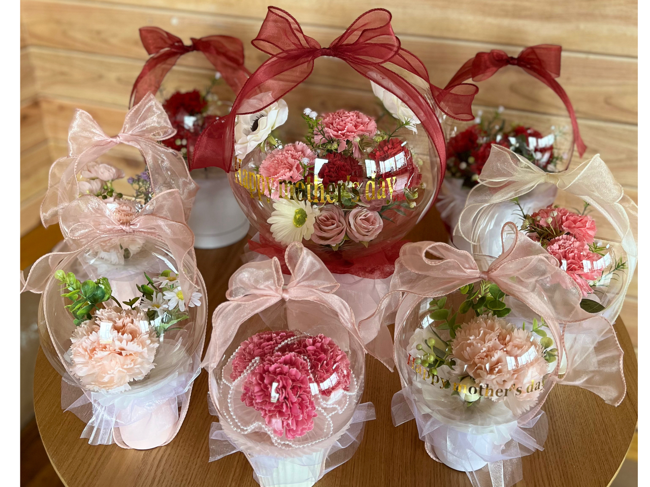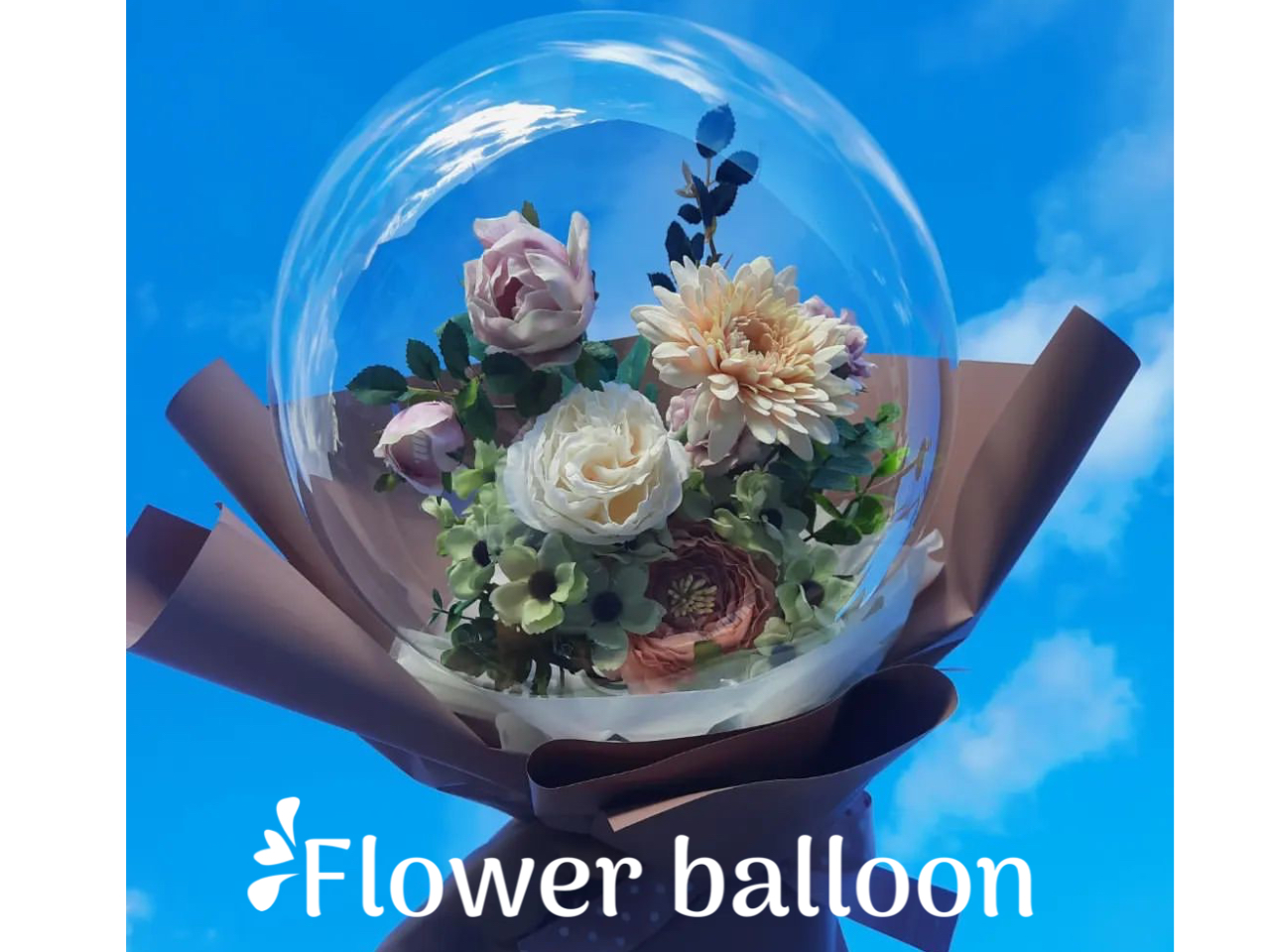 韓国で大人気!SNSでも話題のしぼまない魔法の様な透明の風船にアーティフィシャルフラワーをアレンジして作るフラワーバルーンが作れます。記念日のプレゼントに喜ばれるアイテムです。