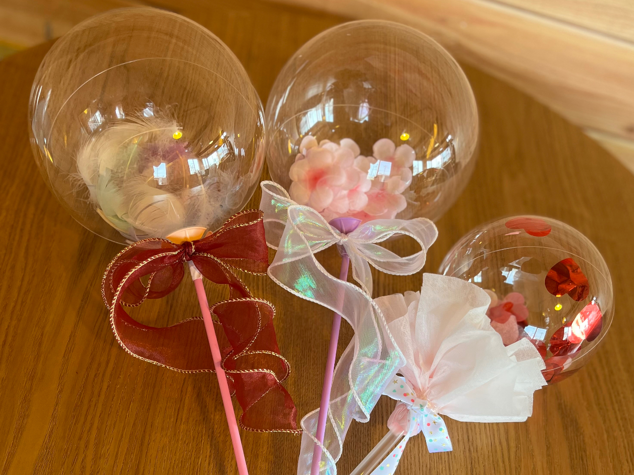 韓国で大人気!SNSでも話題のしぼまない魔法の様な透明の風船の中にフェザーやキラキララメなどを入れて制作しみんなで記念撮影!卒業・入学・入園など思い出に♪