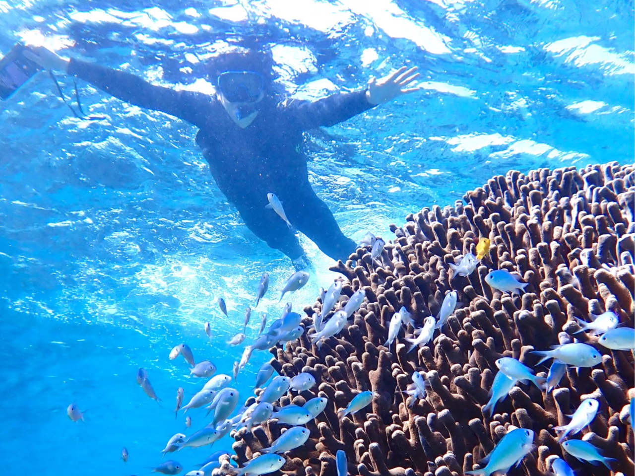 サンゴやカラフルな熱帯魚が生息する海を、島在住のガイドがご案内いたします!