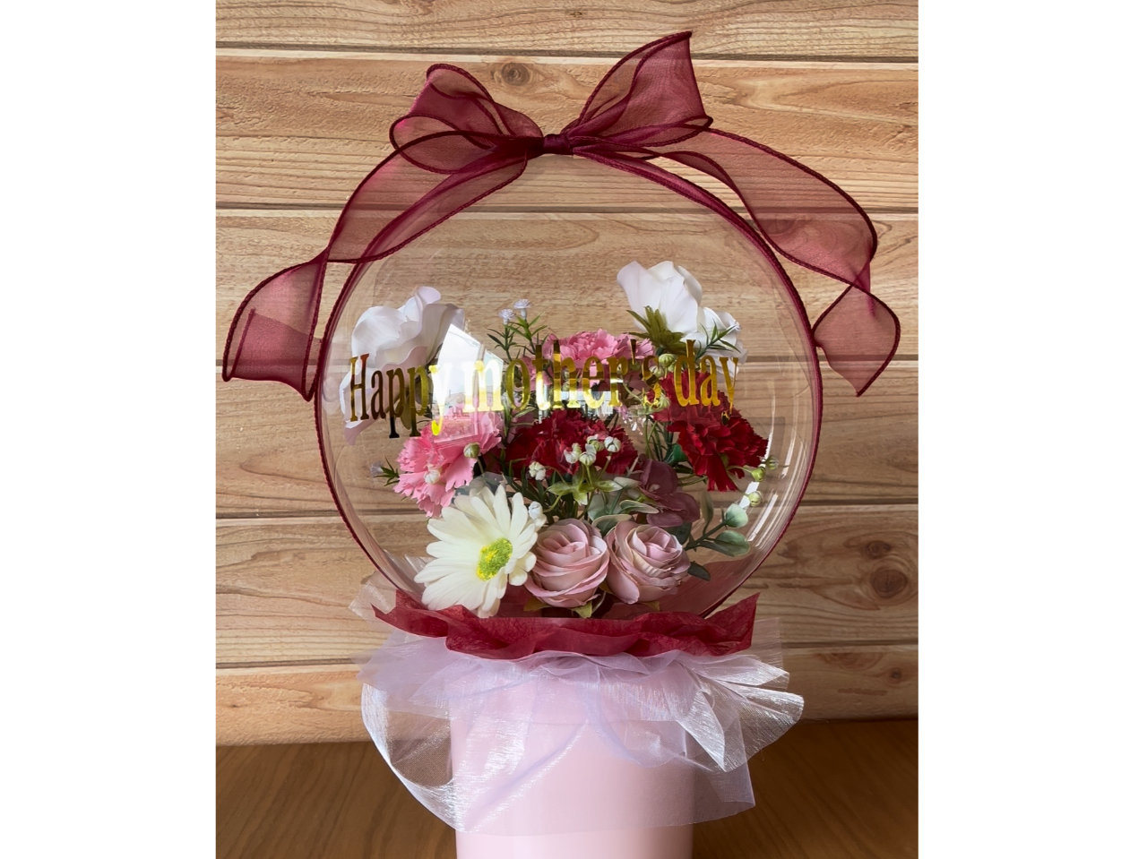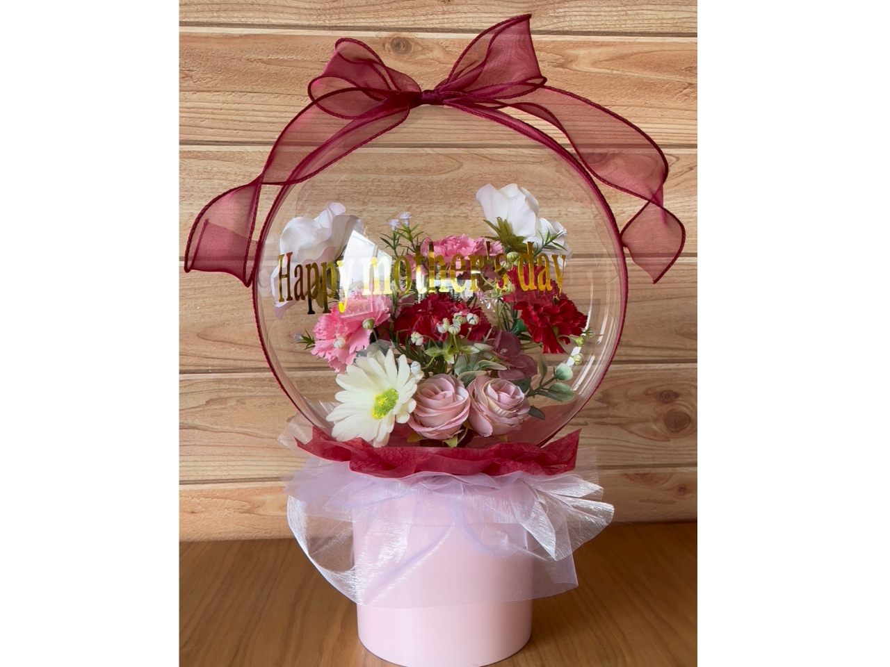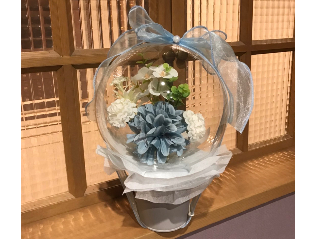 韓国で大人気!SNSでも話題のしぼまない魔法の様な透明の風船にアーティフィシャルフラワーをアレンジして作るフラワーバルーンが作れます。記念日のプレゼントに喜ばれるアイテムです。