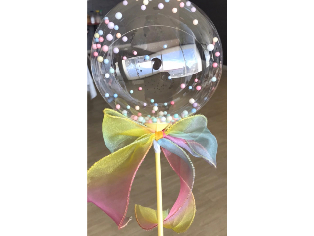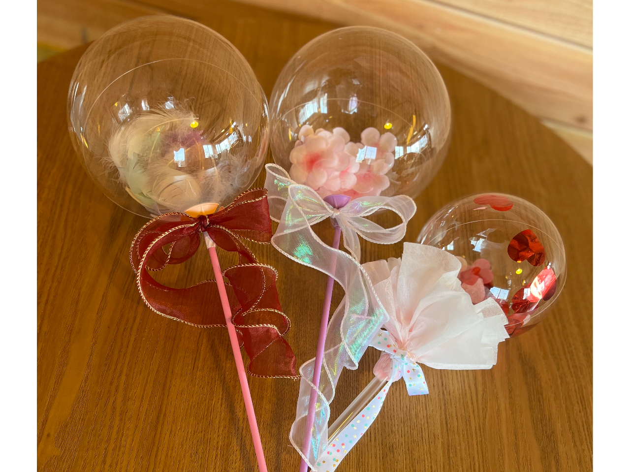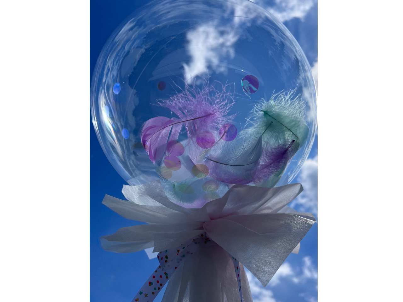 韓国で大人気!SNSでも話題のしぼまない魔法の様な透明の風船の中にフェザーやキラキララメなどを入れて制作しみんなで記念撮影!卒業・入学・入園など思い出に♪