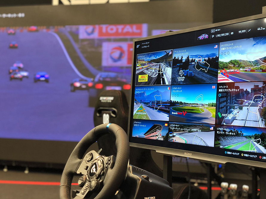 《eモータースポーツ体験》リアルな映像で世界各国のサーキットコースを楽しめるリアルドライビングシュミレーターです。