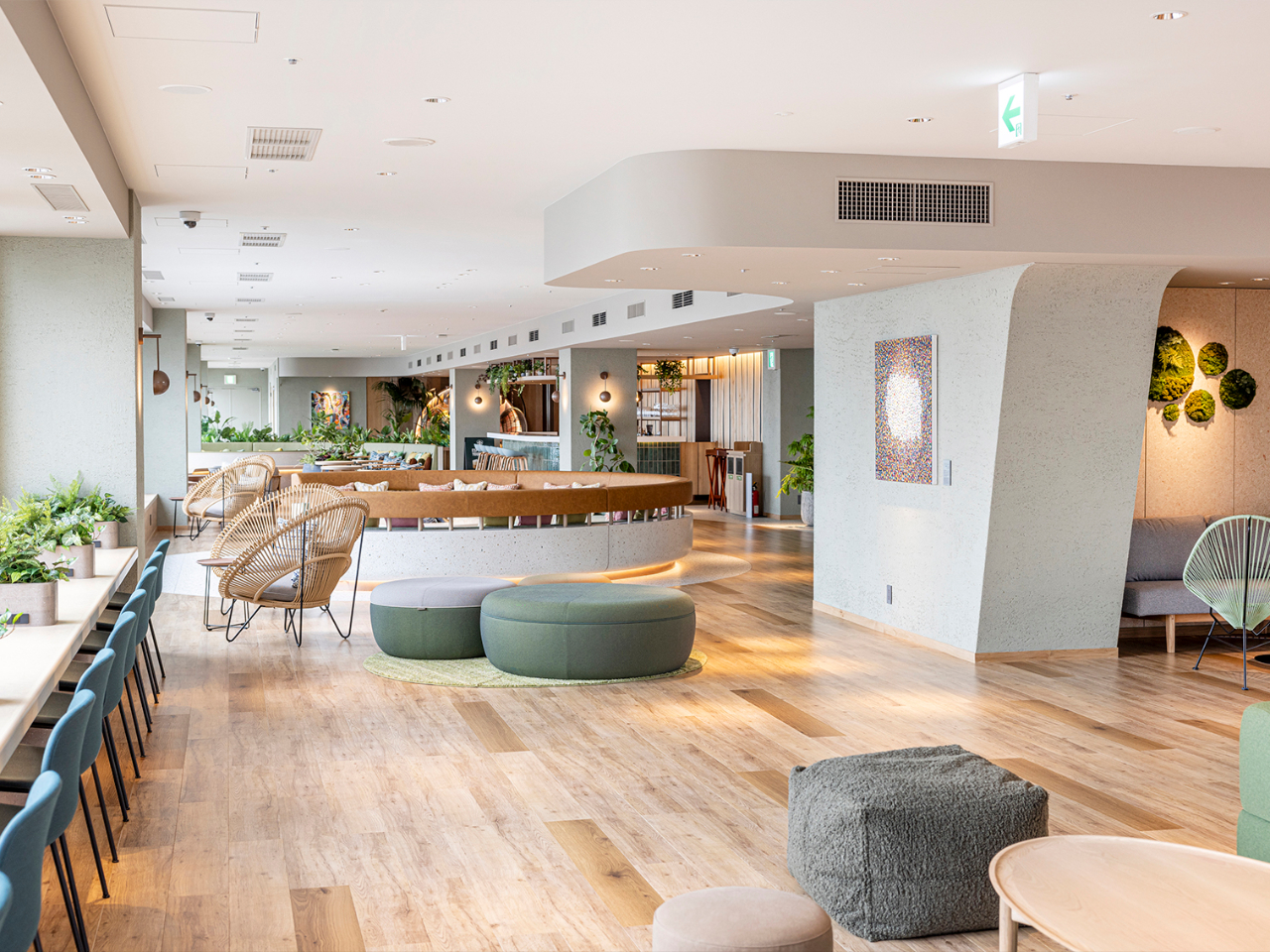 約 1,100平米の広々とした空間で6つのゾーンに分かれており、ご宿泊のお客様だけでなく、外来のお客様も思い思いのスタイルで自由に過ごすことができます。