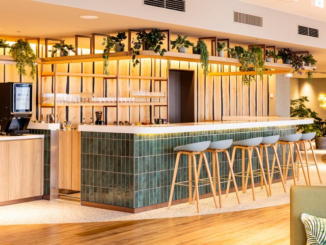 「ラウンジ」ゾーンではフリーのソフトドリンクのほか、スターバックスの豊かなコーヒー体験を提供する「We Proudly Serve Starbucksコーヒープログラム」により、スターバックスのコーヒー豆を使用していれたカフェ ラテやカプチーノをセルフサービスでお楽しみいただけます。また、バーカウンターが設置されておりビールやカクテルなどのアルコールをナイトタイムに有料で提供いたします。