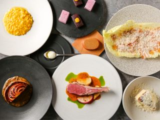 L'ASの名物『フォアグラのクリスピーサンド』はもちろん、旬の食材を使用したディナーコース(全9品)
