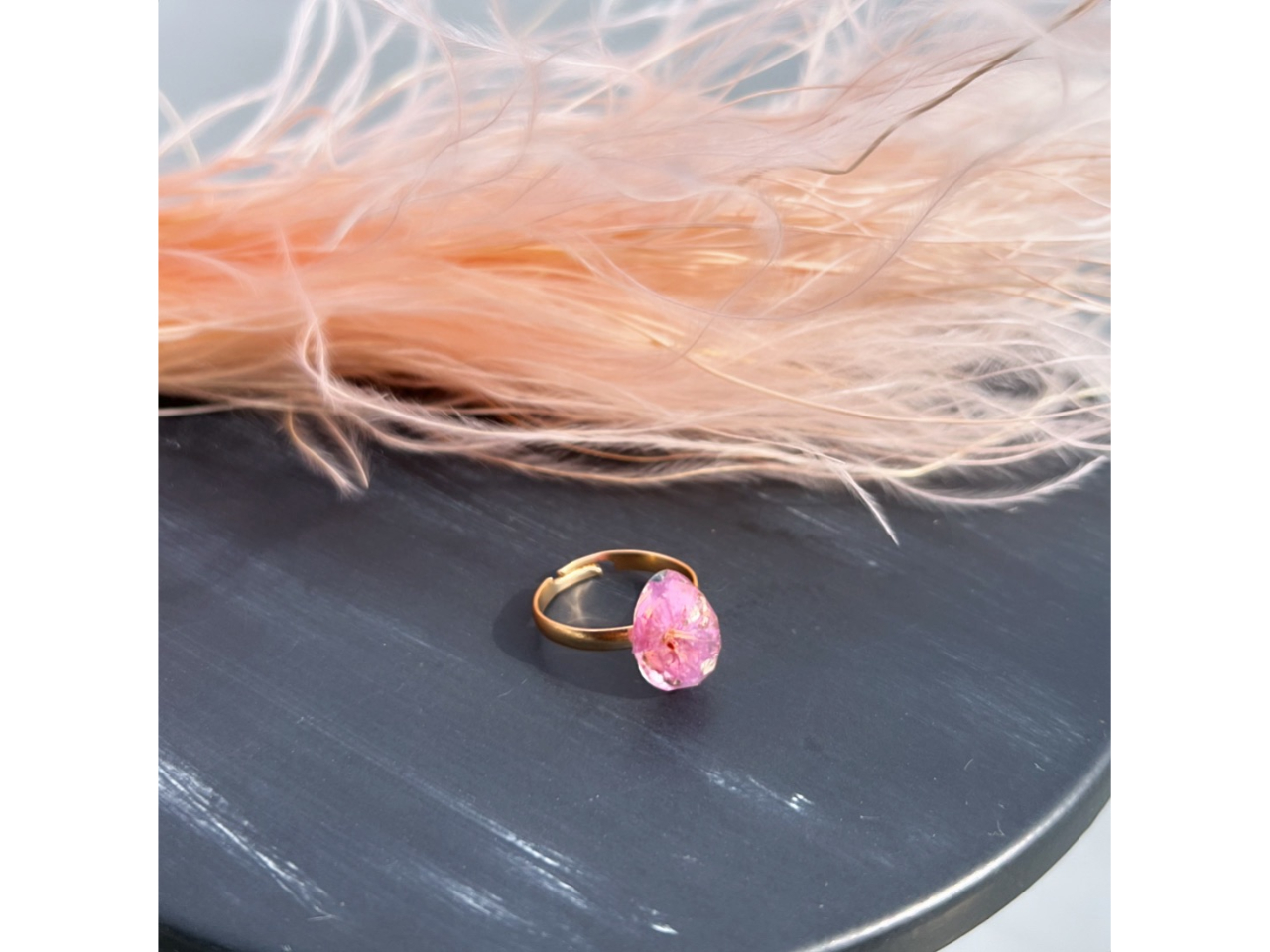 「熱海ピンク」のリングは、””スターチス”という植物を加工してリングにします