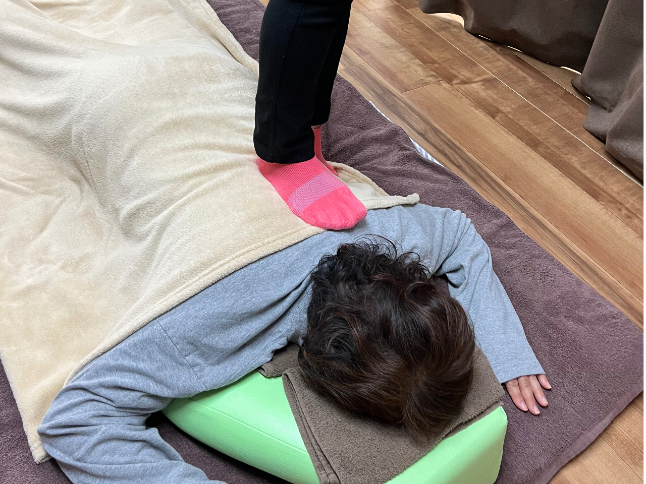 足踏み施術で全身のコリに無理なくアプローチしながら、お客様のお好みの強さにて加圧し、ほぐしていきます。セラピストは全員足踏みのスクールを卒業しておりますので、安心してご利用ください。細かい部分は手圧や指圧にて丁寧にほぐします。初めてご利用いただくお客様も、ほとんどの方は眠ってしまう気持ち良さです。大きな筋肉をまずは足踏みにて広範囲にポンピングいたしますのでデトックス効果も高く、むくみが改善したとのご感想を多くいただいております。地元のお客様はリピーターさんも多く、ペア施術も可能ですので観光で沖縄にお越しの方にも喜んでいただいております。