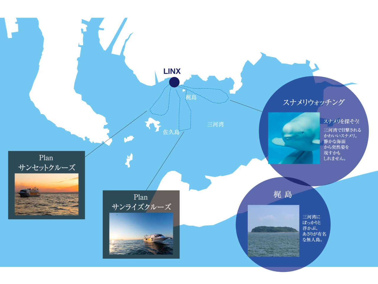 | 料金に含まれるもの | 三河湾クルーズ乗船料+船内無料ドリンク |