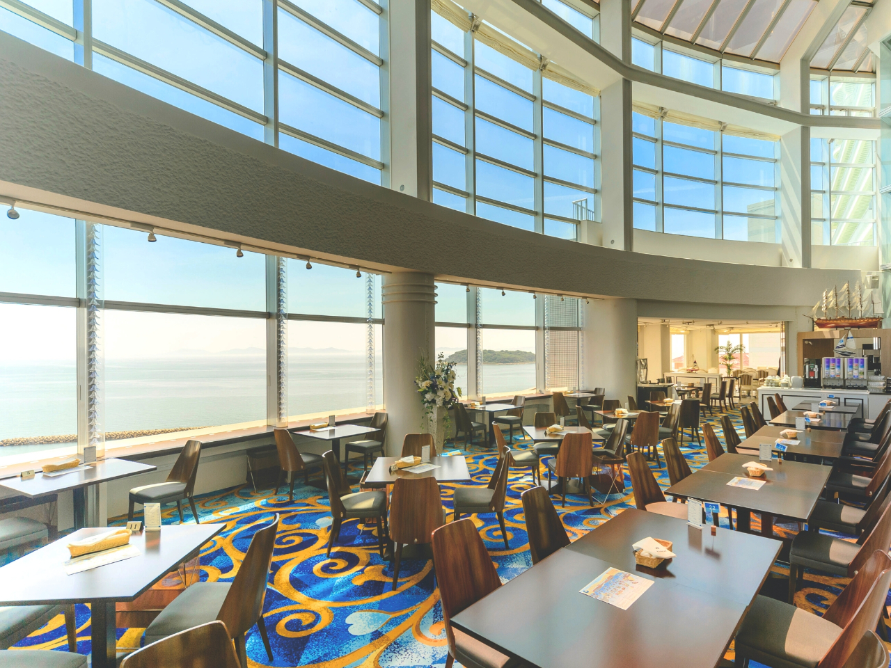 ホテルランチ会場『ベイブルー』 目の前に広がる三河湾。潮風と陽射しに包まれて味わう寛ぎのランチタイム。