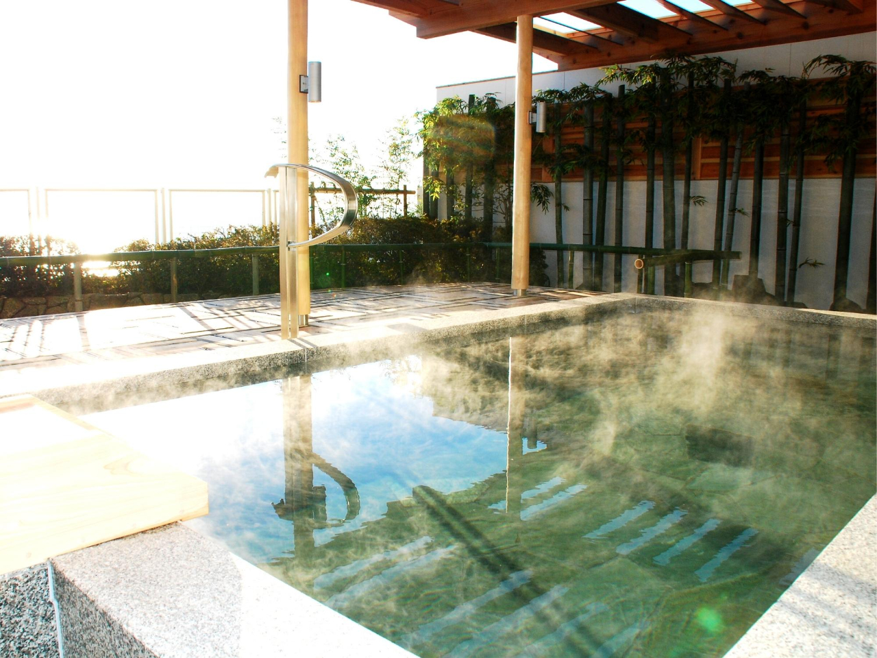 海を一望する露天風呂は吉良温泉の湯を使用しております。(塩化物泉)