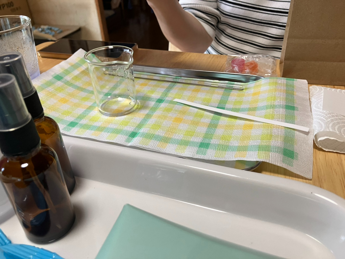 家庭用蒸留器で、植物を蒸留する体験ができます。