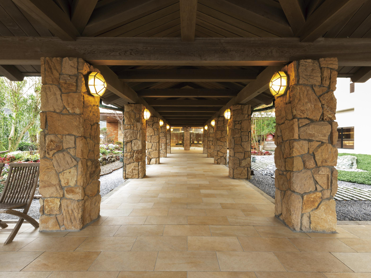 このコンセプトのもと、麦飯石を用いた露天岩風呂「庭園の湯」・「岩盤麦飯浴」、海を眺める外湯「海の回廊」・「寝湯」などを配置しております。