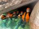 天然のウォータースライダーやエメラルドグリーンに透き通る水面への飛び込み等、自然の地形を活かした遊びを楽しみながらゴールを目指します!