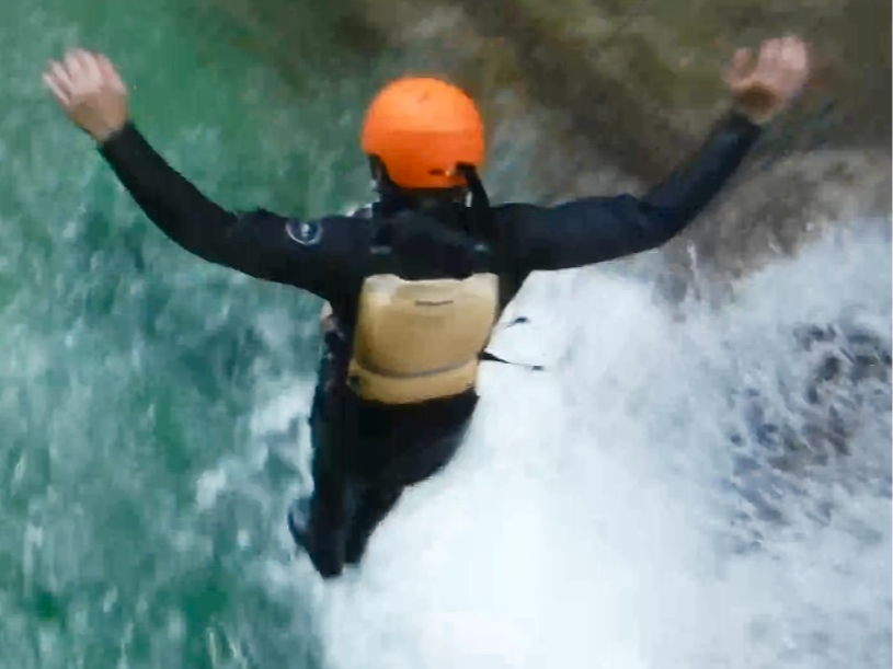 天然のウォータースライダーやエメラルドグリーンに透き通る水面への飛び込み等、自然の地形を活かした遊びを楽しみながらゴールを目指します!
