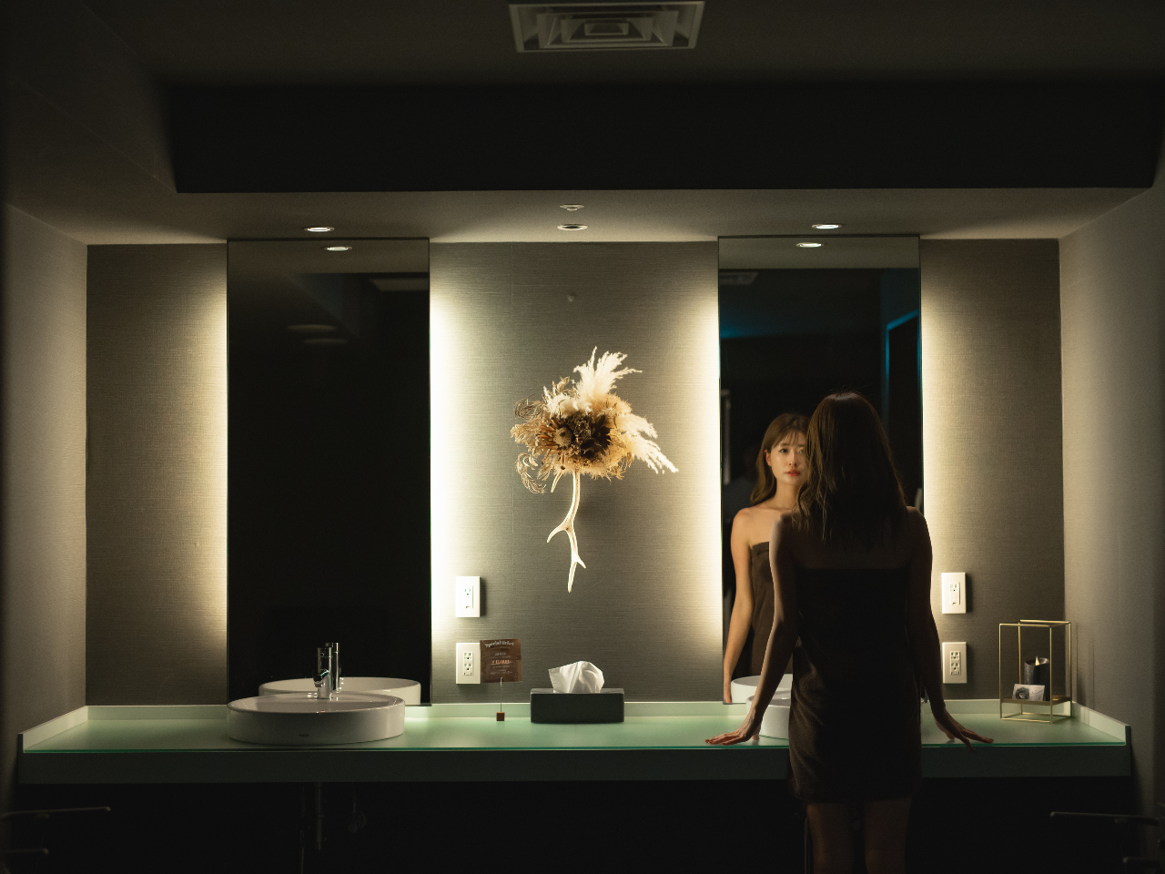 スキンケア用品やドライヤー・ヘアアイロンまで完備のパウダールーム