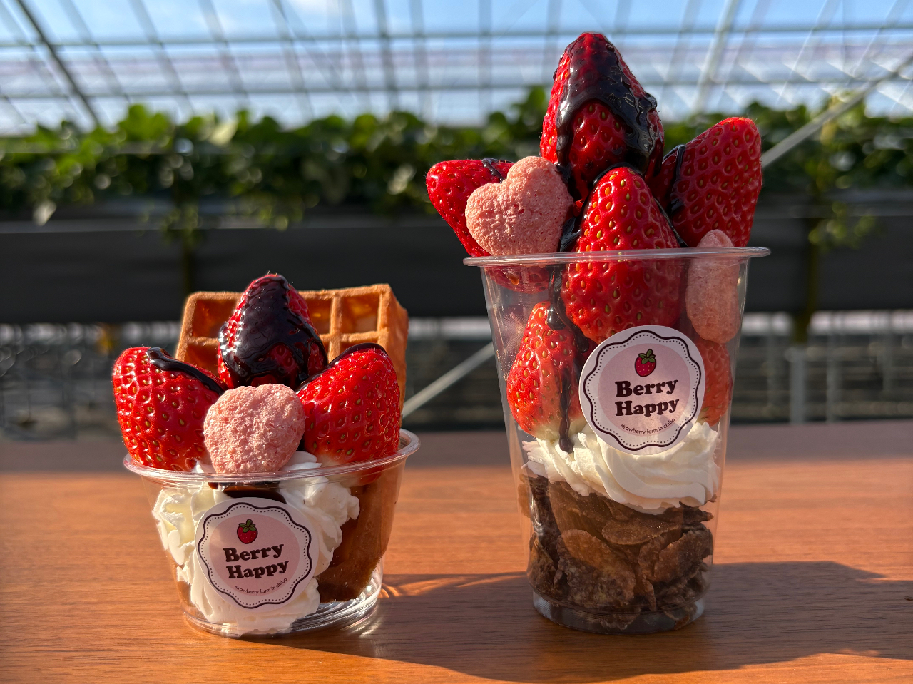 摘み取ったいちごでワッフルとクレープとパフェも作れます!(日替わり)