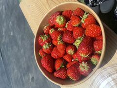 収穫したいちご(Mサイズケース)甘くて、小学校一年生の娘がほぼ1人で食べるぐらい美味しかったです。
