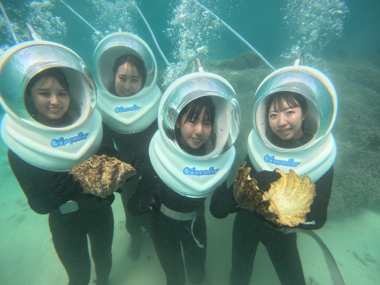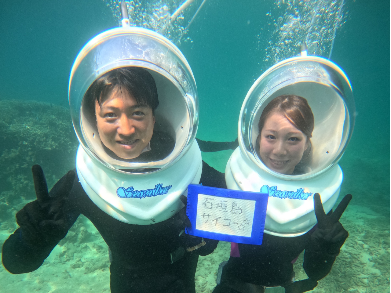 《石垣島で海中散歩!》ボートで行くシーウォーカー、顔が濡れない、泳げなくても安心、女性にもおすすめ!(ホテル送迎&写真データ無料プレゼント)