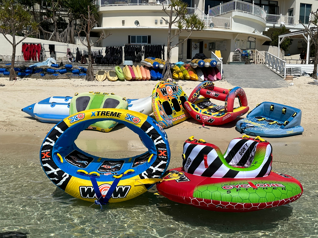 お客様のご要望に合わせたレベルで楽しんでいただけます!バナナボート・チュービング