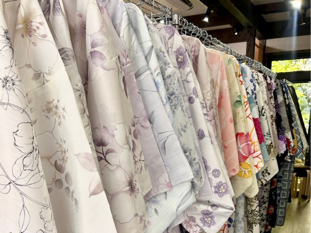 自慢の着物は元呉服屋だった当店社長の選りすぐり。