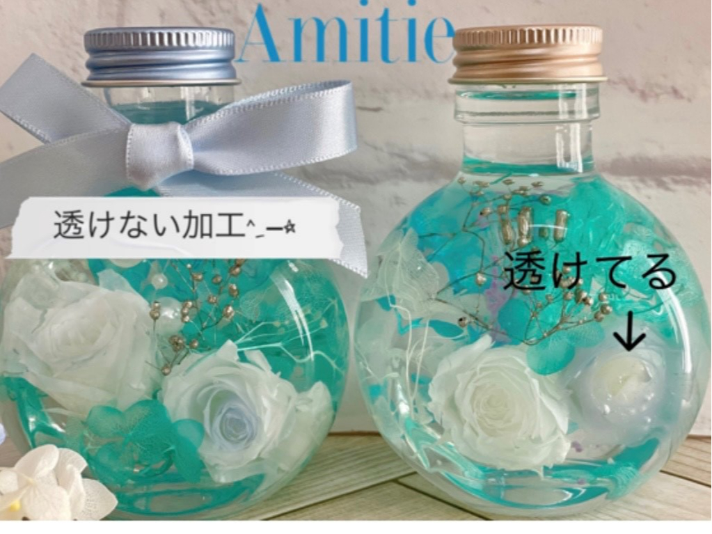 【奈良県橿原市】Amitieオリジナル加工で染めたプリザーブドフラワーを使ったオイルに透けないハーバリウム〜女性におススメ〜日本ハーバリウム協会認定講師が丁寧にお教えいたします★自由研究にも♪
