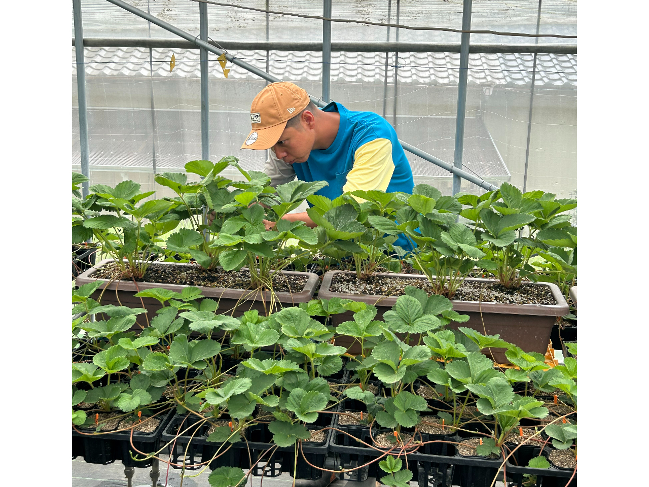 いちごの苗を大切に育てております。美味しい苺ができますように♪